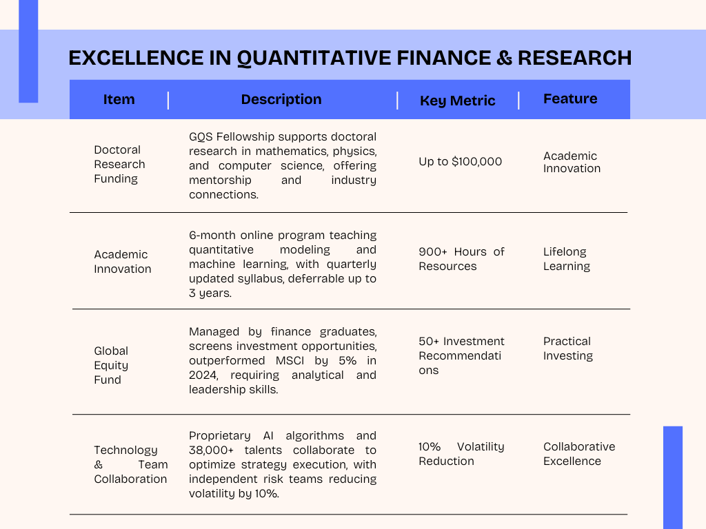Investment Practice & Advantages, Excellence in Quantitative Finance & Research